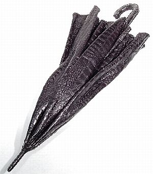 One of the more interesting things we’ve seen this year is a crocodile skin umbrella. Apparently a billionaire paid $50,000 for it. Quite a hefty sum considering he could have bought some faux black crocodile fabric from MJTrends and made one for about $49,985 less. It definitely has the cool factor.