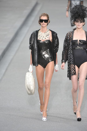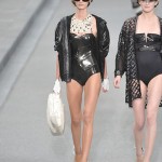 Next we have a smattering of images that range from couture, to sporty, to the traditional bikini. Yes, even the most straight forward and stale design as the bikini can be made anew by leveraging non-traditional materials like faux leather or vinyl fabric.